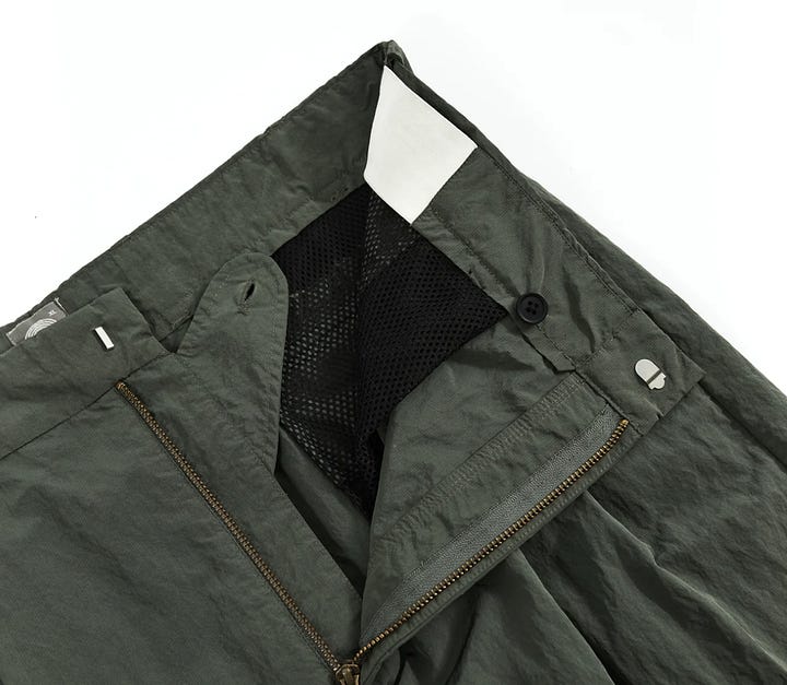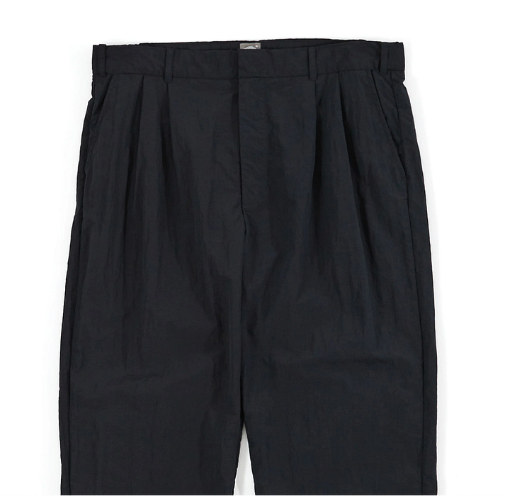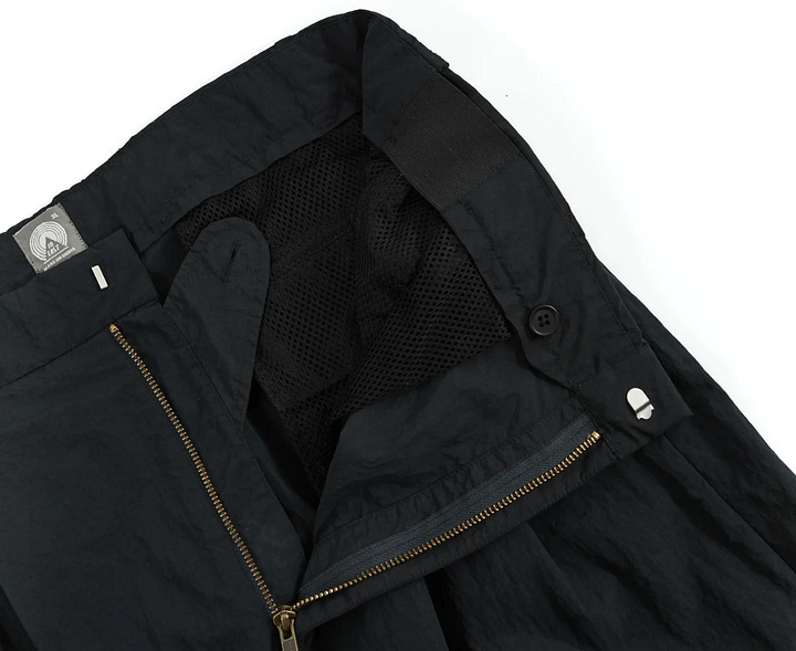 18 East is a brand that’s very much unlike a lot of other brands out right now. Tons of garments proudly crafted in India comprised of all kinds of shapes and structures. This pair of pleated pants is one of those garments that stands out. Why? It’s composed of ripstop nylon. A pleated trouser in ripstop nylon. Have you seen that before? We haven’t.