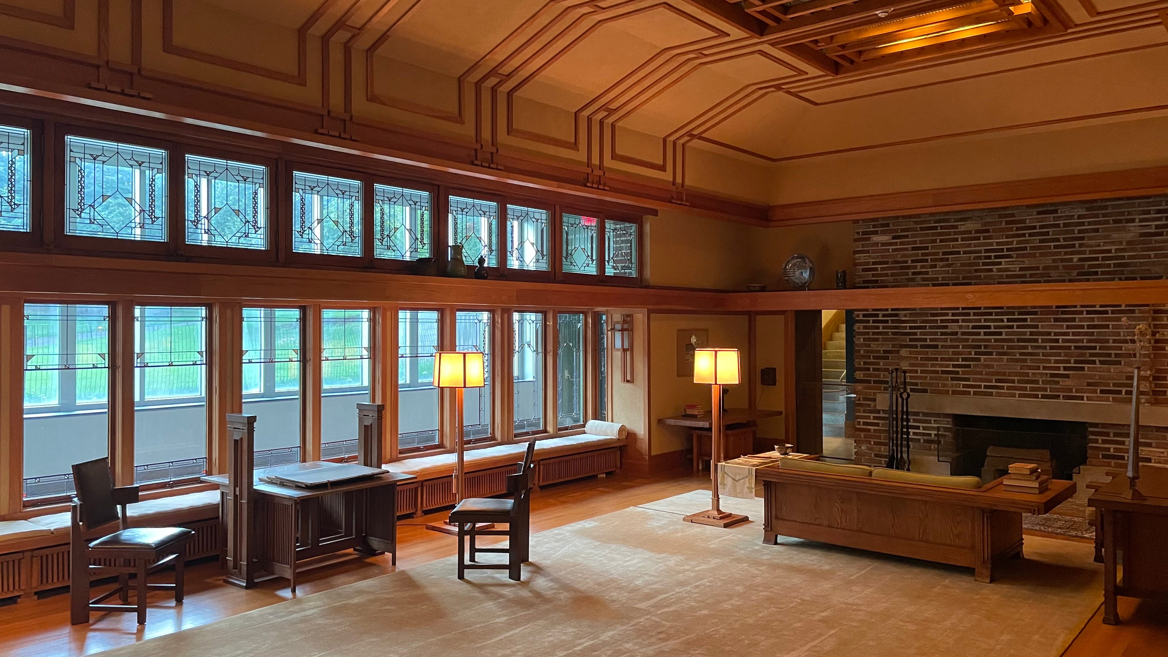 During a recent trip to NYC with a handful of homies, I found myself standing in a 4 by 10 or 12 foot chunk of flooring at The Met. Around me were waist-high railings, disallowing me the ability to walk further into a large room. The space I was standing in was an entrance to a much larger space that functioned as a viewing area. What was on display in front of me was a recreation of The Living Room from the Francis W. Little House, designed by Frank Lloyd Wright.